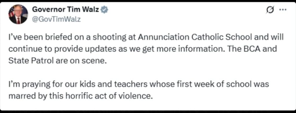 Minn. Governor Tim Walz Responds to Catholic School Shooting on Twitter